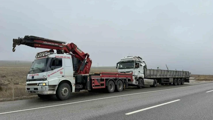 Toz şeker yüklü tır refüje girerek devrildi, 2 kişi yaralandı