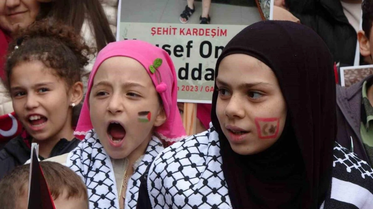 Trabzon’da çocuklar İsrail’in Gazze’de Filistin halkına yaptığı zulmü protesto etmek için yürüdüler.