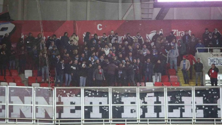 Sivasspor ile Trabzonspor arasında Sivas 4 Eylül Stadyumu’nda oynanan maçta bordo-mavili taraftarlar takımlarını yalnız bırakmadı. Deplasman tribününün büyük kısmı doldu.