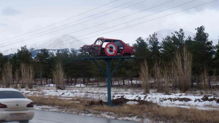 Erzurum-Erzincan ve Erzurum-Kars çevre yolu üzerine yerleştirilen hurda araçlar sürücülerin dikkatini çekiyor. Metal panolar üzerine yerleştirilen araçlarla sürücülerin dikkatli olmaları ve kazaların önüne geçilmesi amaçlanıyor.