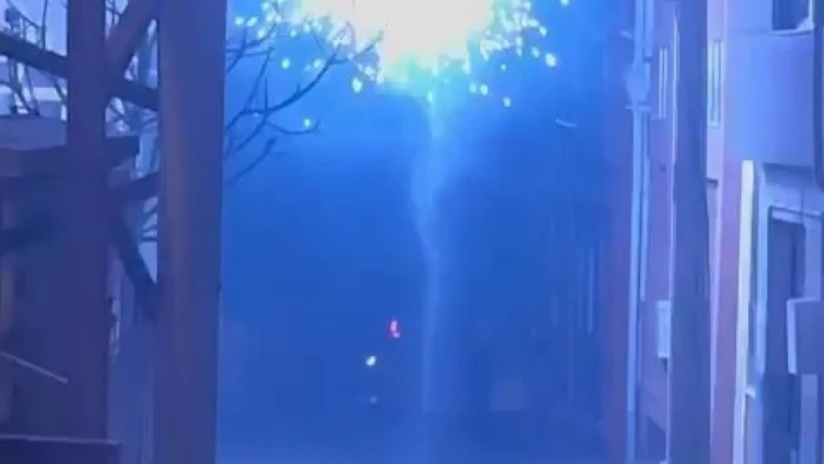 Trafo bomba gibi patladı: Kıvılcımlar sokağı aydınlattı