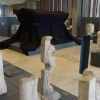 Troya Müzesi'nde sergilen Polyksena'nın kurban edilmesinin betimlendiği Polyksena Lahti, siyah örtüyle kapatıldı