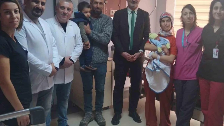 İl Sağlık Müdürü Dr. Muhammed Duran, beraberindekiler ile birlikte aileyi ziyaret edip Mertcan bebeğe sağlıklı ömür diledi.