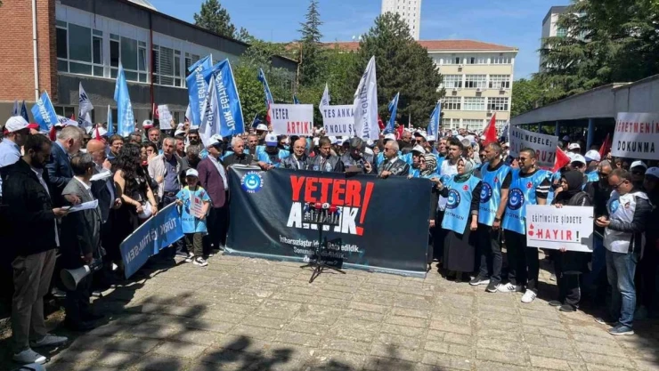 Türkiye Eğitim, Öğretim ve Bilim Hizmetleri Kolu Kamu Çalışanları Sendikası (Türk Eğitim-Sen) üyesi eğitim çalışanları, kendilerine yönelik şiddet olaylarına karşı protesto gerçekleştirerek, şiddetin önlenmesi için yasal düzenlemenin yer almadığı bir Öğretmenlik Meslek Kanunu hiçbir surette kabul etmeyeceklerini ifade etti.