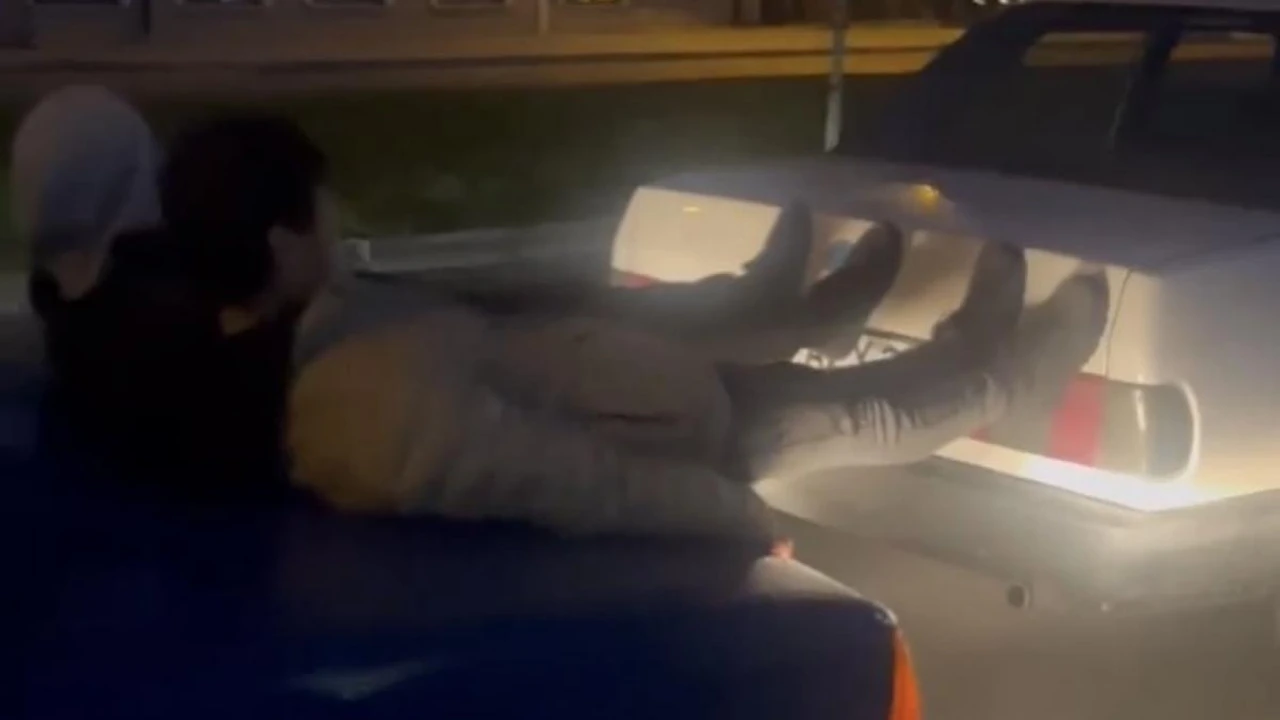 Olay, merkez Nilüfer ilçesi Organize Sanayi Bölgesi’nde meydana geldi. Edinilen bilgiye göre, seyir halindeki otomobil bozulunca yardımına yine aynı marka araçla gelen arkadaşı yetişti. Kaputun üstüne çıkan gençler bozulan Şahin model otomobili ayaklarıyla iterken o anlar cep telefon kamerasına yansıdı.