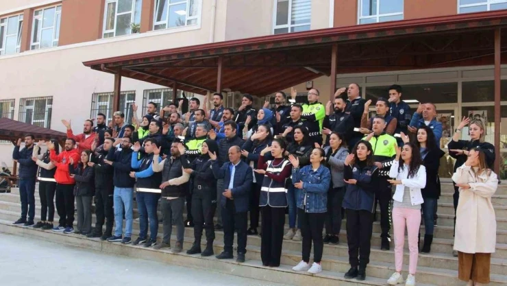 Hatay’da il emniyet müdürlüğü ekiplerinin işaret diliyle okuduğu İstiklal Marşı büyük beğeni topladı.