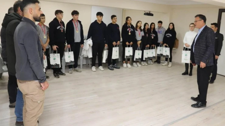 Ziyarette Okul Müdürü Kezban Elçin, Danışman Öğretmen Hasan Ersin ve şampiyon öğrenciler hazır bulundu. Başkan Öküzcüoğlu ziyarete gelen sporculara içerisinde eğitim malzemelerinin bulunduğu birer adet çanta hediye etti.