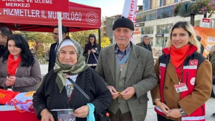 Bilecik’te kadına şiddete yönelik farkındalık çalışması kapsamında kurulan stanta gelen yaşlı çift "Kadına şiddete sıfır tolerans" dedi.