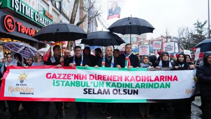 AK Parti İstanbul teşkilatı ve AK Parti Ümraniye İlçe teşkilatı tarafından 8 Mart Dünya Kadınlar Günü dolayısıyla Ümraniye’de ‘Gazze Filistin Sevgi Yürüyüşü’ isimli yürüyüş düzenlendi. ‘Çocuk ölümlerini durdurun’ ve ‘Ümraniye kadınları Gazze soykırımına dur diyor’ dövizleri açan kadınlar sessiz bir yürüyüş gerçekleştirdi. Yürüyüşe, Ümraniye Belediye Başkanı İsmet Yıldırım, AK Parti Ümraniye İlçe Başkanı Salim Çetinkaya ve yüzlerce kadın katıldı.
