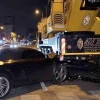 Ümraniye'de lüks otomobil park halindeki vince çarptı