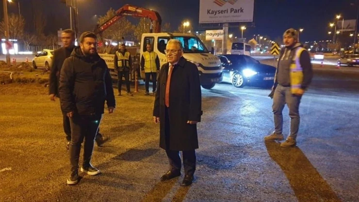Başkan Büyükkılıç, Talas Bulvarı üzerinde, Recep Tayyip Erdoğan Millet Bahçesi ile Erciyes Üniversitesi arasında yer alan Üniversite Kavşağı’nda tamamlanan düzenleme çalışmalarını yerinde inceleyerek yetkililerden bilgi aldı. Büyükşehir Belediye Başkanı Dr. Memduh Büyükkılıç, incelemeleri esnasında açıklamalarda bulunarak, “Üniversite kavşağımızdaki düzenlemelerde sona geldik. Gecenin bu saatinde sağ olsun ekibimiz çalışıyor. Bu süre içerisinde, servis yolu diye bilinen millet bahçemizin kenarındaki yolu trafiğe kapatmak durumunda kaldık. Vatandaşlarımıza bu manada sıkıntı oluşturduğunun da farkındayız ama inşallah tamamlandı, toparlandı. Esenli bir şekilde, huzurlu bir şekilde, güvenli bir şekilde bu kavşak düzenlemesiyle hem kavşak rahatlamış olacak hem de yolumuz açılmış olacak. Şehrimize Üniversite Kavşağı’mız hayırlı, uğurlu olsun diyoruz. Cenab-ı Allah kaza bela vermesin” diye konuştu. Sürücülere de seslenen Başkan Büyükkılıç; “Sürücülerden ricamız, her zaman olduğu gibi yol standardı yükseldikçe sürat artıyor, kurallara uysunlar diye buradan belirtiyor emeği geçenlere teşekkür ediyoruz. Gecenin bu saatinde çalışan kardeşlerimizin de ellerine sağlık” dedi.