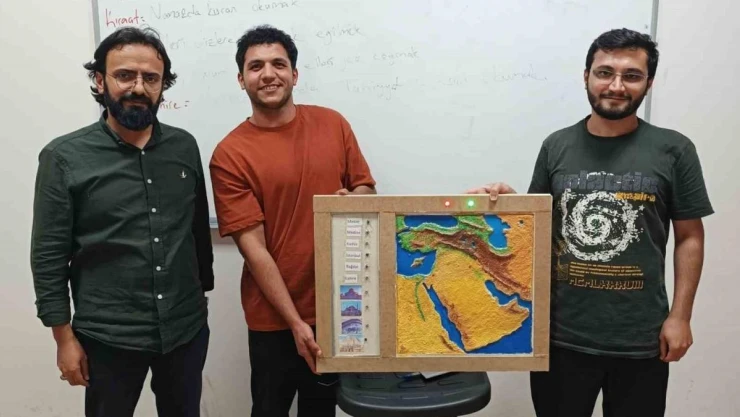 Iğdır Üniversitesinde Dr. Öğr. Üyesi Ahmet Aydın’ın desteğiyle tasarlanan etkileşimli materyal, İslam medeniyetinin beşiği olan şehirleri tanıtan ve öğrencilerin bu şehirleri bulmaca şeklinde keşfetmelerini sağlayan bir araç olarak tasarlandı. Materyale ilişkin bilgi veren Dr. Öğr. Üyesi Aydın, şu ifadeleri kullandı: “Harita üzerindeki sensörler sayesinde öğrenciler, doğru şehri bulduklarında yeşil ışıkla ödüllendirilirlerken, yanlış seçim yaptıklarında kırmızı ışıkla uyarılmaktadırlar. Bunun yanında, öğrenciler söz konusu materyalle bu şehirlerin kültür merkezlerini temsil eden mimari yapıları da öğrenme fırsatı bulmaktadırlar. Bu özgün uygulama, coğrafi bilgilerin yanı sıra dini ve kültürel bilgilerin de etkili ve eğlenceli bir şekilde öğrenilmesine imkanlar tanımaktadır. Öğrencilerimizin bu yenilikçi projesi, din öğretiminde teknolojinin kullanımına güzel bir örnek teşkil etmekte ve İlahiyat Fakültesi’nin üretimci potansiyelini ortaya koymaktadır.”