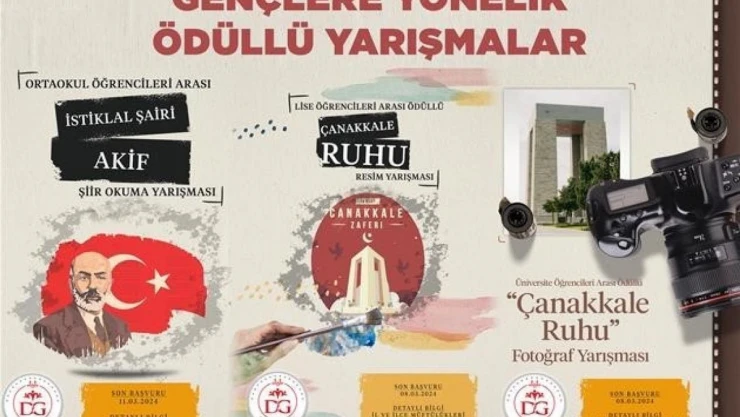 Diyanet İşleri Başkanlığı Din Hizmetleri Genel Müdürlüğü tarafından "12 Mart İstiklal Marşı’nın Kabulü ve Mehmet Âkif Ersoy’u Anma Günü ile 18 Mart Çanakkale Deniz Zaferi ve Şehitleri Anma Günü" etkinlikleri kapsamında "Ödüllü Yarışmalar" düzenlenecek. Uşak İl Müftülüğünün sosyal medya hesaplarından yapmış olduğu paylaşım Ortaokul öğrenciler arasında yapılacak olan ‘İstiklal Şairi Akif Şiir Okuma’ yarışmasında birinciye 5 bin TL, ikinciye 3 bin TL ve üçüncüye ise 2 bin TL para ödülü olduğu açıklanırken, lise öğrencilerin yarışacağı ‘Çanakkale Ruhu’ resim yarışmasında birinciye 1 bin 500 TL, ikinciye bin TL ve üçüncüye 500 TL para ödülü olacağı açıklandı. Öte yandan Üniversite öğrencilerin yarışacağı ‘Çanakkale Ruhu’ fotoğraf yarışmasında birinciye 2 bin TL, ikinciye 1 bin 500 TL ve üçüncüye ise 1 bin TL para ödülü olacağı açıklanırken yarışmaya son başvuru tarihi 8 Mart olarak açıklandı.