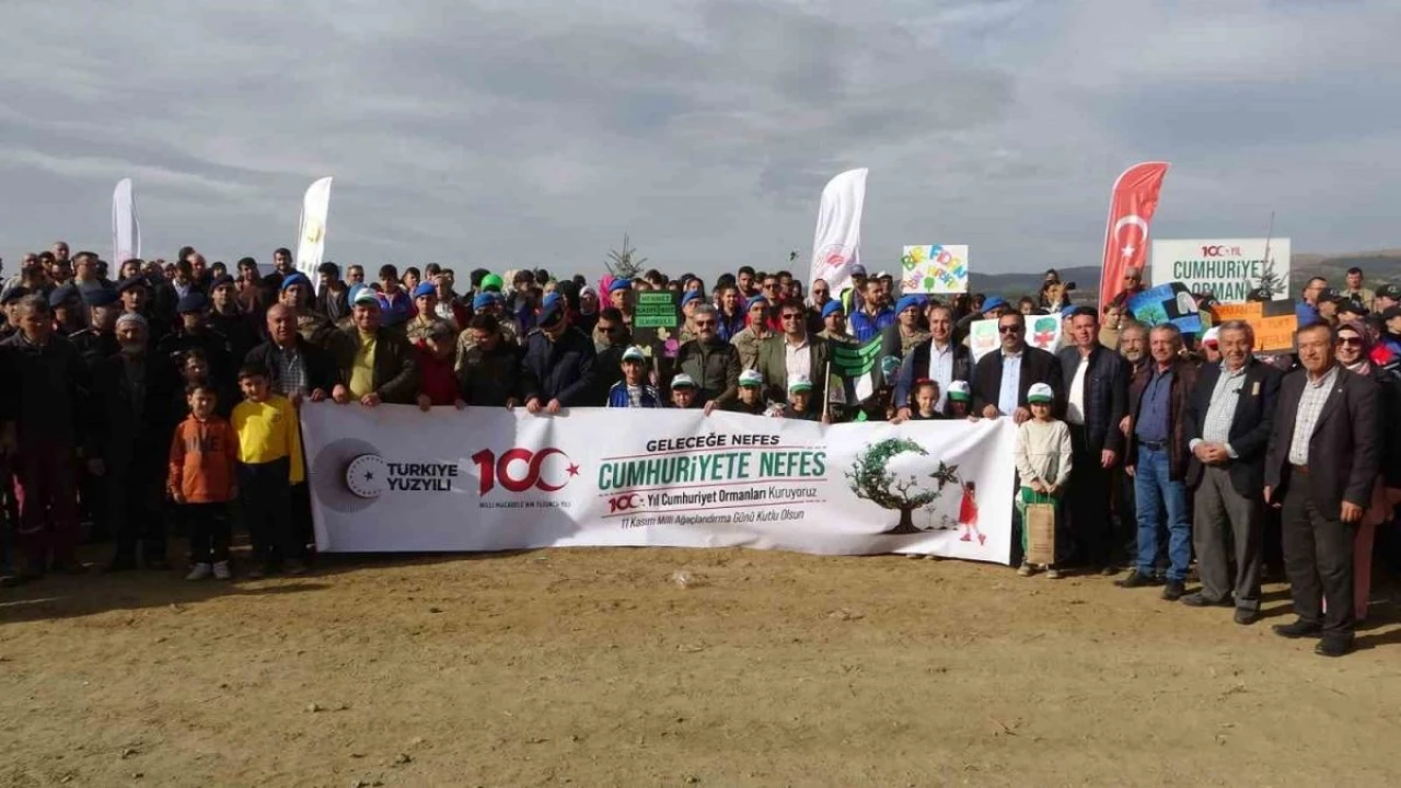 Uşak'ta 'Geleceğe Nefes Cumhuriyete Nefes' için fidanlar toprakla buluştu