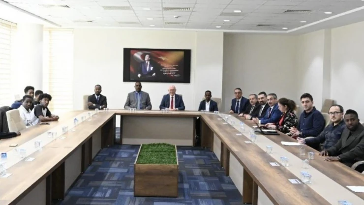 Toplantı sonrası Rektör Savaş ve Rektör Mursal, Uşak Üniversitesinde öğrenim gören Somalili öğrencilerle bir araya gelip bir süre sohbet ettiler.