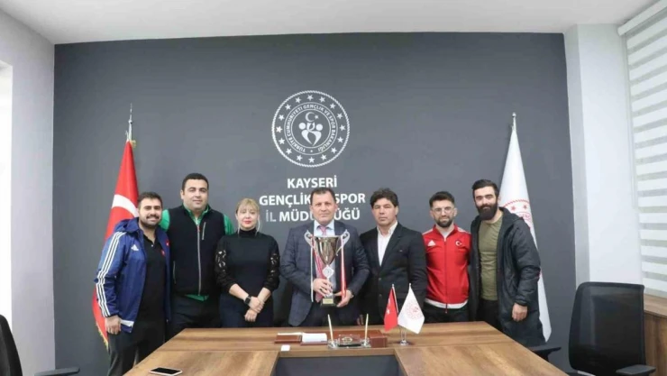 Kayseri, Türkiye Olimpiyatlara Hazırlık Merkezi sporculardan U20 Gençler Grekoromen Türkiye Şampiyonasında mücadele eden sporculardan Ömer Altaş 55 kg Türkiye şampiyonu, Ferhat Kocabaş 60 kg ve Taha Çakmak 80kg’da Türkiye üçüncüsü olarak büyük bir başarıya imza attı. Şampiyona dönüşü sporcuları ve antrenörleri Ömer Aytekin, Engin Çetin, Mehmet Ali Yiğit, Kayseri Gençlik ve Spor İl Müdürlüğü Spor Kulübü Başkanı Nihal Sert ve Güreş Eğitim Merkezi Müdürü Yunus Ergin İle birlikte Gençlik ve Spor İl Müdürü Ali İhsan Kabakcı’yı ziyaret etti.