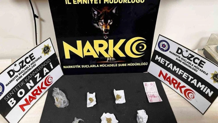 Düzce’de polis ve jandarma ekiplerinin uyuşturucu ile mücadelesi sürüyor. Düzce Cumhuriyet Başsavcılığın koordinesinde Düzce İl Emniyet Müdürlüğü Narkotik Suçlarla Mücadele Şube Müdürlüğü ekiplerince yapılan planlı çalışmada 12 suç kaydı bulunan E.A.’nın (23) üzerinde ve ikametinde arama yapıldı. Yapılan aramada 5 parça halinde 3.7 gram bonzai ve 2 parça halinde 1.3 gram metamfetamin ele geçirildi. Şüpheli E. A. uyuşturucu madde ticareti yapmak suçundan tutuklanırken, şüpheliden uyuşturucu madde satın alan 2 kişi hakkında ise uyuşturucu madde kullanma suçundan adli işlem yapıldı.