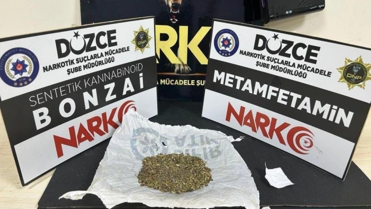 Düzce Cumhuriyet Başsavcılığı koordinesinde Narkotik Suçlarla Mücadele Müdürlüğü tarafından hakkında teknik ve fiziki takip işlemi yapılan E.S. isimli şüpheli polis ekiplerince yakalandı. Şüpheliden uyuşturucu aldığı tespit edilen 5 şahıstan ise 3 parça halinde 3 gram metamfetamin ve 2 parça 32 gram sentetik kannabinoid ele geçirildi. Şahıslara "uyuşturucu madde bulundurmak ve kullanmak" suçundan adli işlem yapıldı. E.S. ise "uyuşturucu madde ticareti yapmak" suçundan tutuklandı.