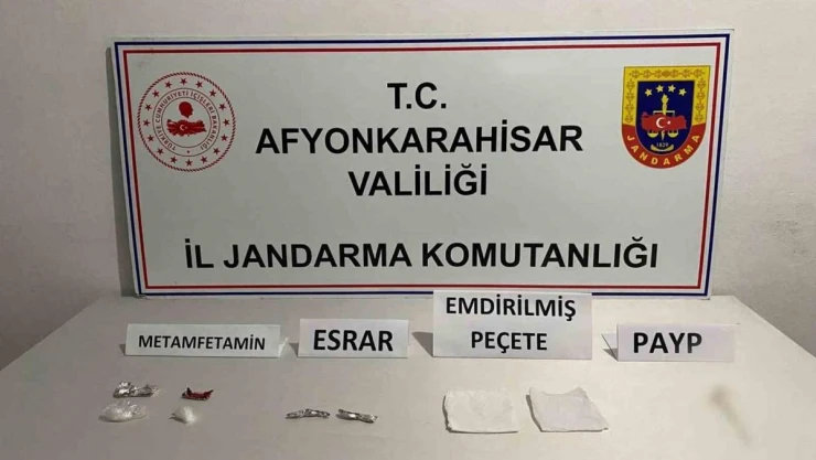 Edinilen bilgilere göre, İl Jandarma Komutanlığı ekipleri S.Ö. ve H.A.Ş. isimli şahısların uyuşturucu madde ticareti yaptıkları yönünde aldıkları istihbarat üzerine harekete geçti. Ekipler şüphelilerin kullandıkları aracı Bolvadin ilçesine bağlı Dişli beldesinde durdurarak arama yaptı. Aramada 4 gram alüminyum folyoya sarılı esrar, 5 gram metamfetamin ve uyuşturucu kullanma aparatı ele geçirildi.