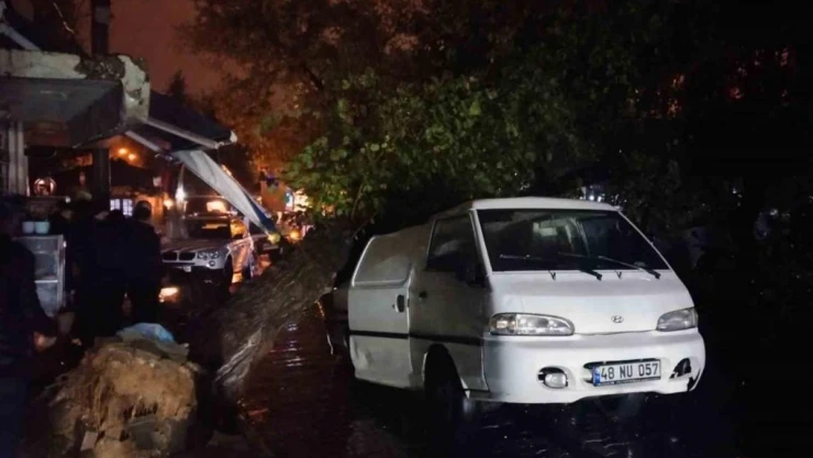 Muğla’nın Menteşe ilçesinde yağış nedeniyle seyir halindeki aracın üstüne ağaç devrildi.