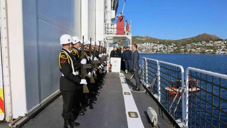 Muğla Valisi İdris Akbıyık, TCSG-703 Umut Korvetini ziyaret ederek çalışmalar hakkında bilgi aldı.