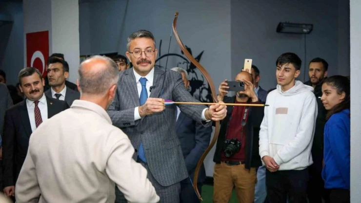 Açılışın akabinde kulüp salonunda bilek güreşi sporcusu ile bilek güreşi yapan Vali Çelik, öğrencilerle birlikte ok da fırlattı.