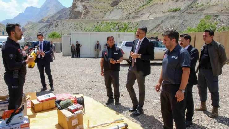 Hakkari Valisi ve Belediye Başkan Vekili Ali Çelik, AFAD'ın depreme hazırlık çalışmalarını yerinde inceledi.