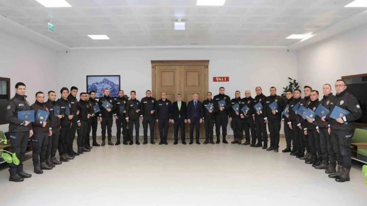 Niğde Valisi Cahit Çelik, İl Emniyet Müdürü Adnan Özdemir'le birlikte 24 çarşı ve mahalle bekçisine göstermiş oldukları özverili çalışmaları dolayısıyla teşekkür ederek başarı belgesi verdi.