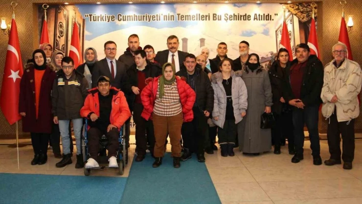Erzurum Valisi Mustafa Çiftçi, Büyükşehir Belediyesi Aile ve Engelli Hizmetler Şube Müdürü Mahmut Temel ve beraberindeki öğrencileri kabul etti.