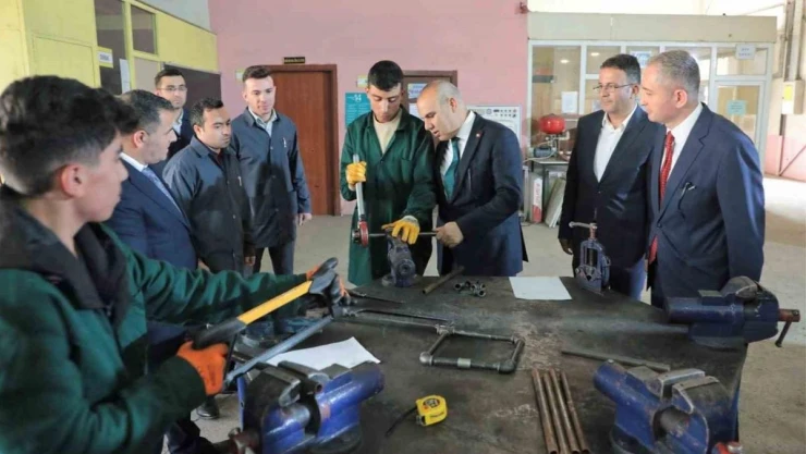 Ağrı Valisi Mustafa Koç, Nurettin Dolgun Mesleki ve Teknik Anadolu Lisesini ziyaret etti.