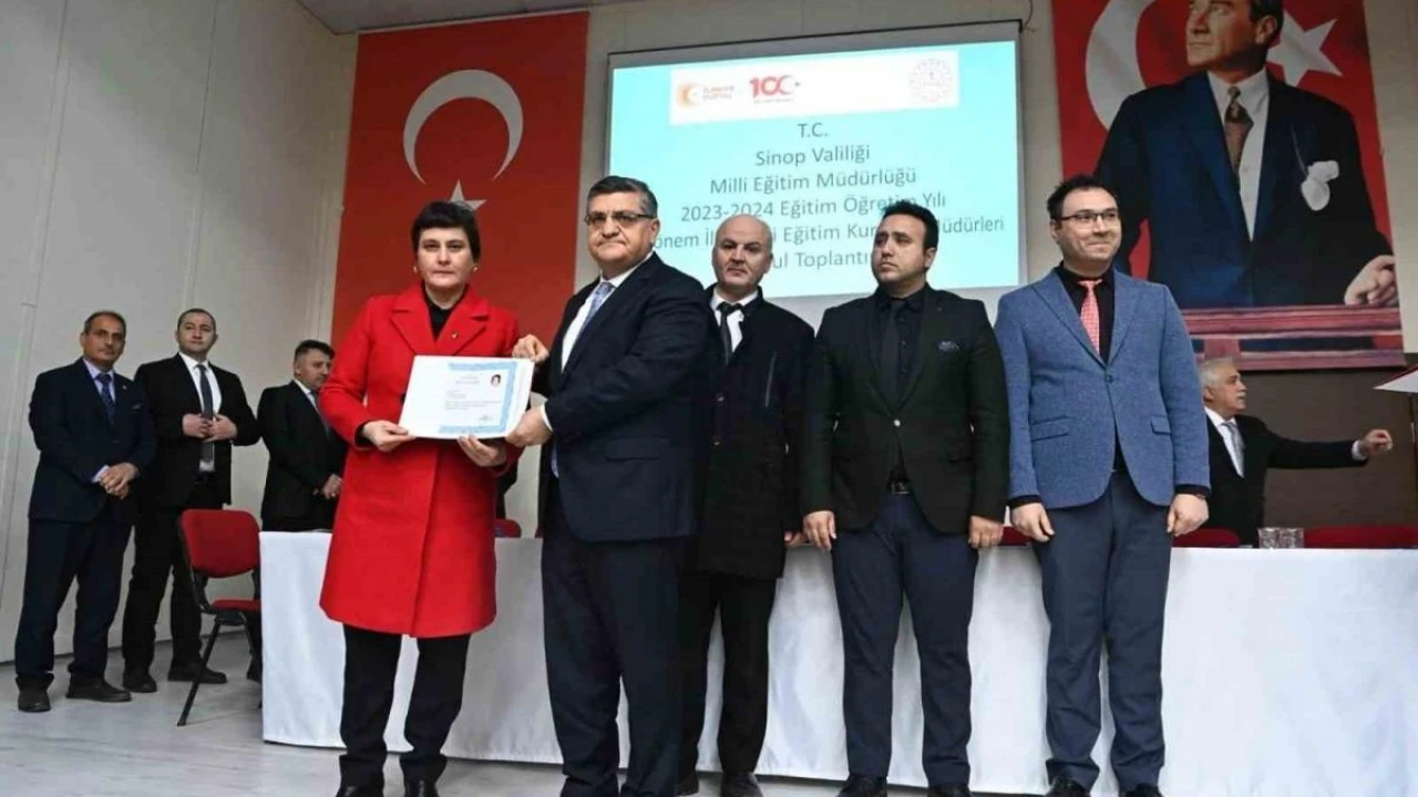 Milli Eğitim Bakanlığı’nın merkez ve taşra teşkilatı ile okul/kurumlarında eğitim alanlarının sağlık ve güvenlik bakımından daha üst seviyelere taşınması, kurumsal yapının güçlendirilmesi, kamu kaynaklarının etkin ve verimli kullanılması, sunulan hizmetlerin izlenmesi ve değerlendirilmesi, uygulanabilir hedefler konularak, performansın ölçülebilmesi amacıyla Sinop’ta TS ISO45001:2018 İş Sağlığı ve Güvenliği Kalite Yönetim Sistemi ile belgelendirilen Sinop İl Milli Eğitim Müdürlüğü, Merkez/Atatürk İlkokulu, Boyabat/Abdurrahman Güneş İlkokulu, Boyabat/Uygur Özay İlkokulu, Ayancık/Avukat Hüsnü Kılış İlkokulu Müdürlerine Vali Özarslan tarafından başarı belgeleri verildi.