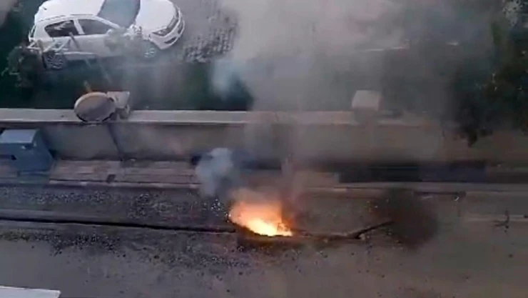 Van’da, altyapı çalışmaları sırasında zarar gören elektrik kabloları yanmaya başlayınca korku dolu anların yaşanmasına neden oldu.
