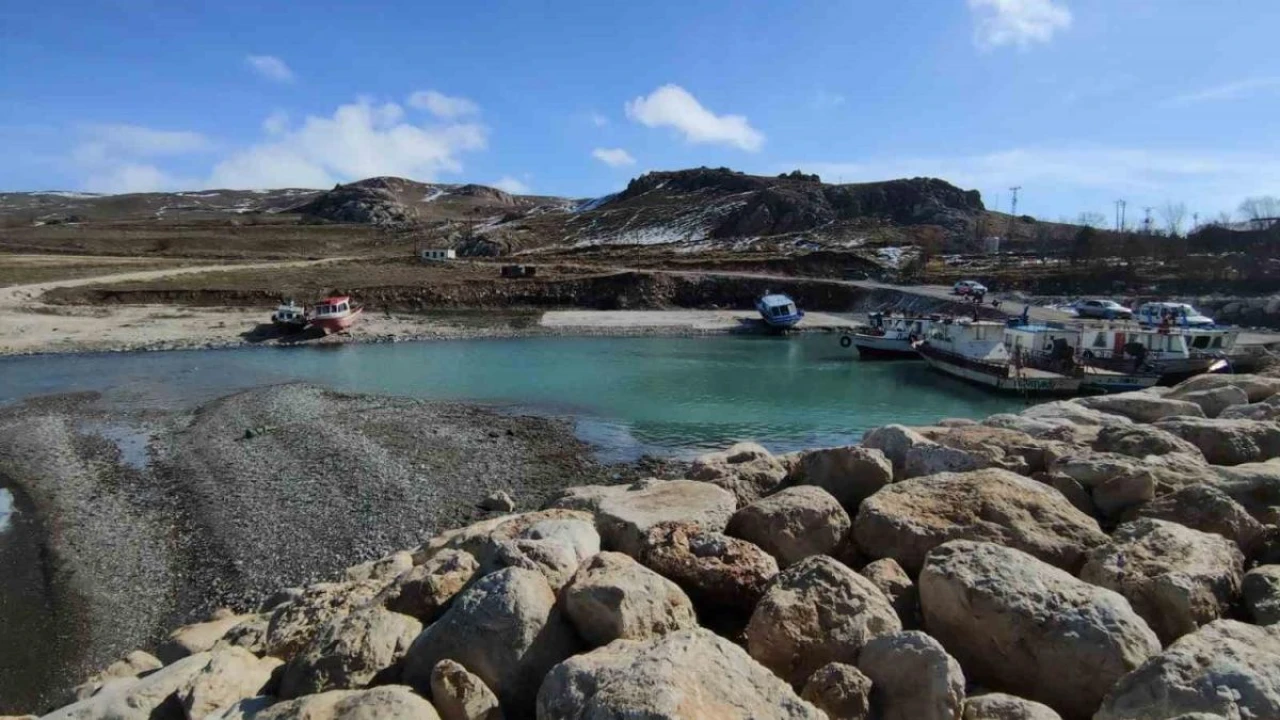 Van’ın Tuşba ilçesinde balıkçı barınağı olarak kullanılan limanının göle açılan kısmının kum ile dolmasıyla tekneler mahsur kaldı.