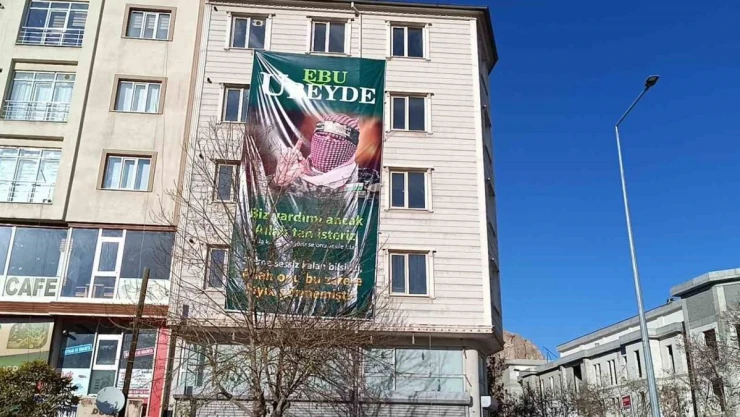 Van'da bir binaya Ebu Ubeyde'nin posteri asıldı