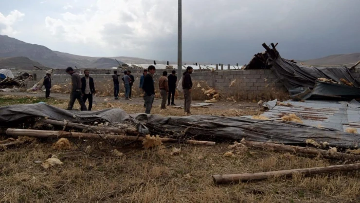 Van'ın Tuşba ilçesinde çıkan hortum nedeniyle bir çiftlik yerle bir olurken, hayvanların ise yaralandığı belirtildi.