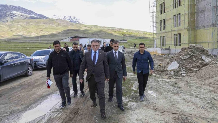 Van Valisi Ozan Balcı, eşini kaybetmiş ihtiyaç sahibi kadınlar için yapımı devam eden konutların inşaatında incelemelerde bulundu.