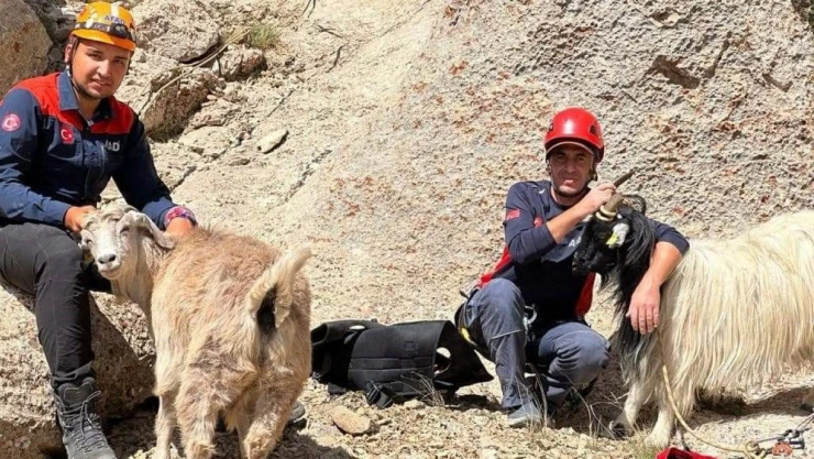 Van'ın İpekyolu ilçesi kırsalında dağda mahsur kalan 6 keçi, AFAD ekipleri tarafından kurtarıldı.