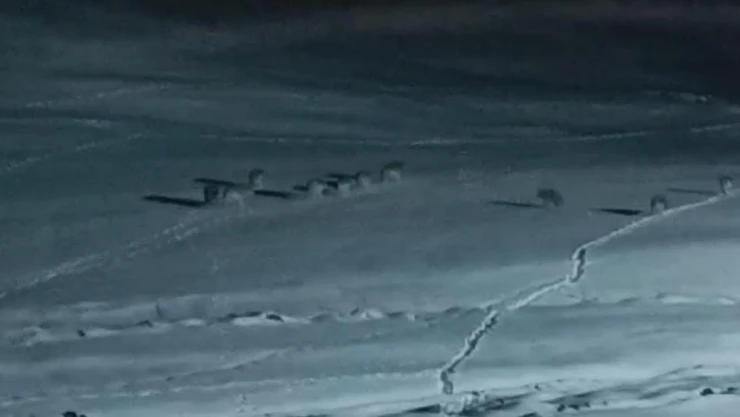 Van’ın Gürpınar ilçesinde kar yağışı ve soğuk hava nedeniyle yiyecek bulmak için mahalle yakınına inen kurt sürüsü cep telefonu kamerasıyla kaydedildi.