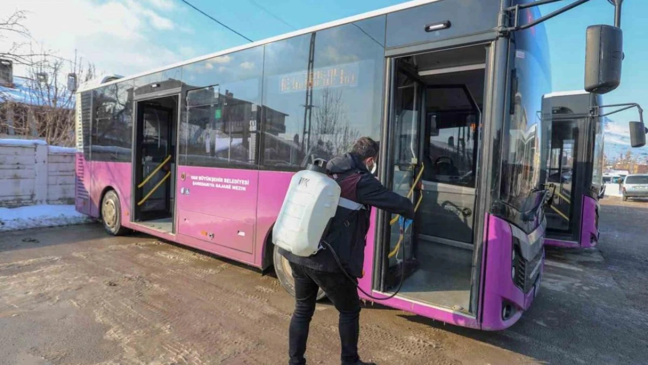 Van Büyükşehir Belediyesi her gün binlerce kişinin kullandığı toplu taşıma araçlarını viral enfeksiyonlara karşı dezenfekte ediyor.
