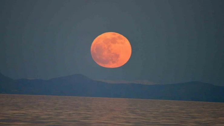 Van Gölü üzerinde yükselen dolunay görsel şölen oluşturdu