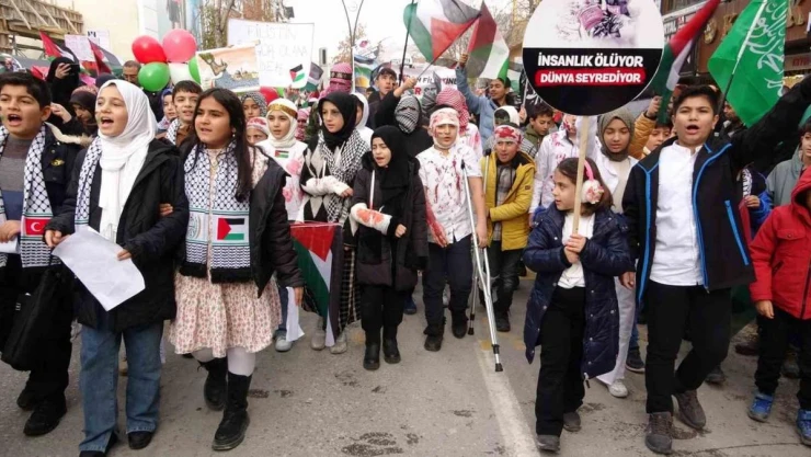 Van’da yaşları 15’ten küçük çocuklar, İsrail’in saldırıları sonucu hayatını kaybeden Gazzeli çocuklar için yürüdü.