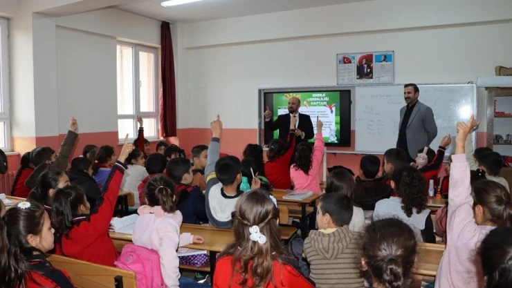 Van, Bitlis, Muş ve Hakkari illerinde eş zamanlı yapılan etkinlikte ilköğretim öğrencileriyle bir araya gelen VEDAŞ yetkilileri, öğrencilere sunum yaparken öğrenciler de enerji verimliliğine ilişkin resimler çizdi.