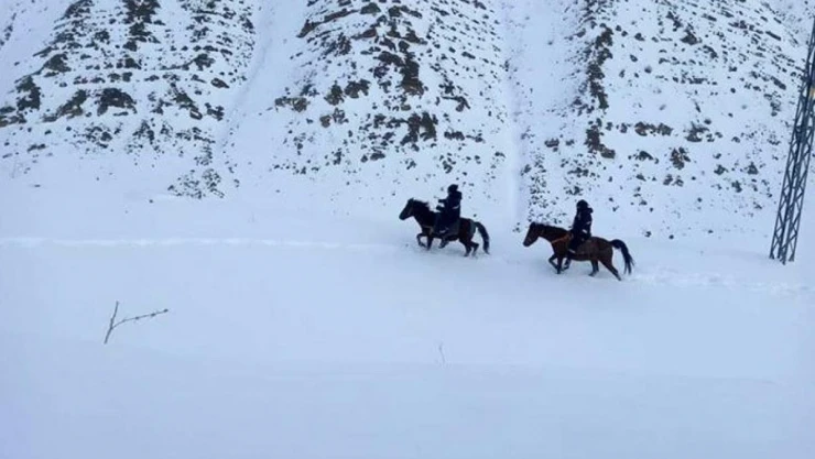 Soğuk havada atlarla dik dağlarda ilerlemekte zorlanan ekipler, bir süre sonra olumsuz hava şartlarına rağmen direkteki hatta oluşan arızayı onardı.
