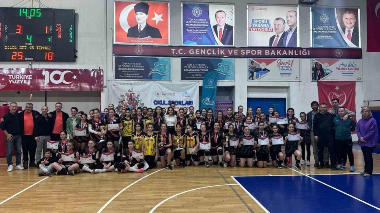 DÜZCE(İHA) – Düzce’de düzenlenen okul sporları yıldız kızlar voleybol müsabakalarında Bilgi ortaokulu şampiyon oldu.