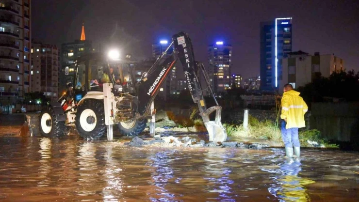 Sağanak yağışın etkili olduğu Mersin'de ekipler sabaha kadar olumsuzlukları gidermeye çalıştı.