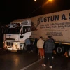 Yağışlı havada kayan tır karayolunu trafiğe kapattı