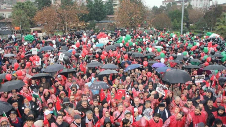 Kocaeli’de yüzlerce kişi yağmura aldırış etmeden Filistin’e destek yürüyüşü düzenledi. 7’den 70’e tek yürek olan vatandaşlar sloganlar eşliğinde İsrail’i protesto etti.