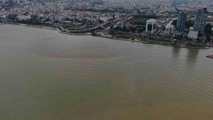 İzmir'de dün gece saatlerinden devam eden sağanak yağışın ardından İzmir Körfezi çamur rengine döndü.