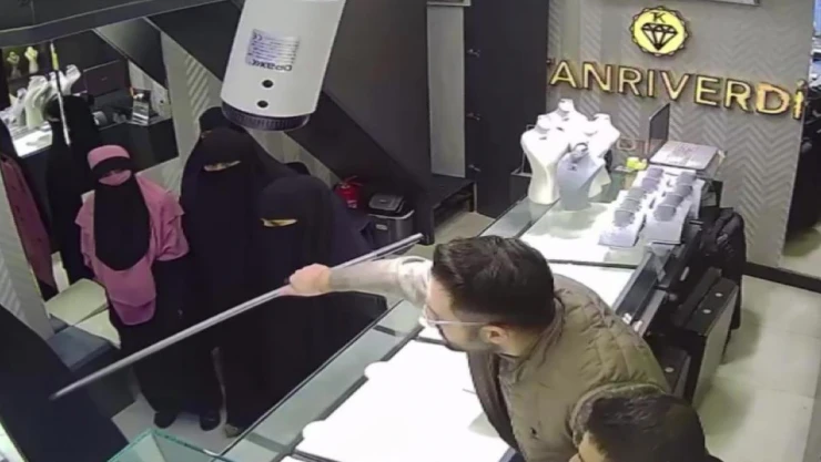 İş yeri sahibi, bir kadının tezgahtan künye çaldığını fark etmesini üzerine elindeki sopa ile önlerini keserek kaçmalarına engel oldu. Daha sonra yaşanan arbedede kadınlardan birisi ayaktayken iş yerinin ortasına tuvaletini yaptı. Bu anlar güvenlik kameralarına yansıdı.