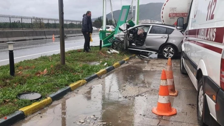 Yalova'da akaryakıt istasyonu tabelasına çarpan otomobilin sürücüsü hayatını kaybetti.